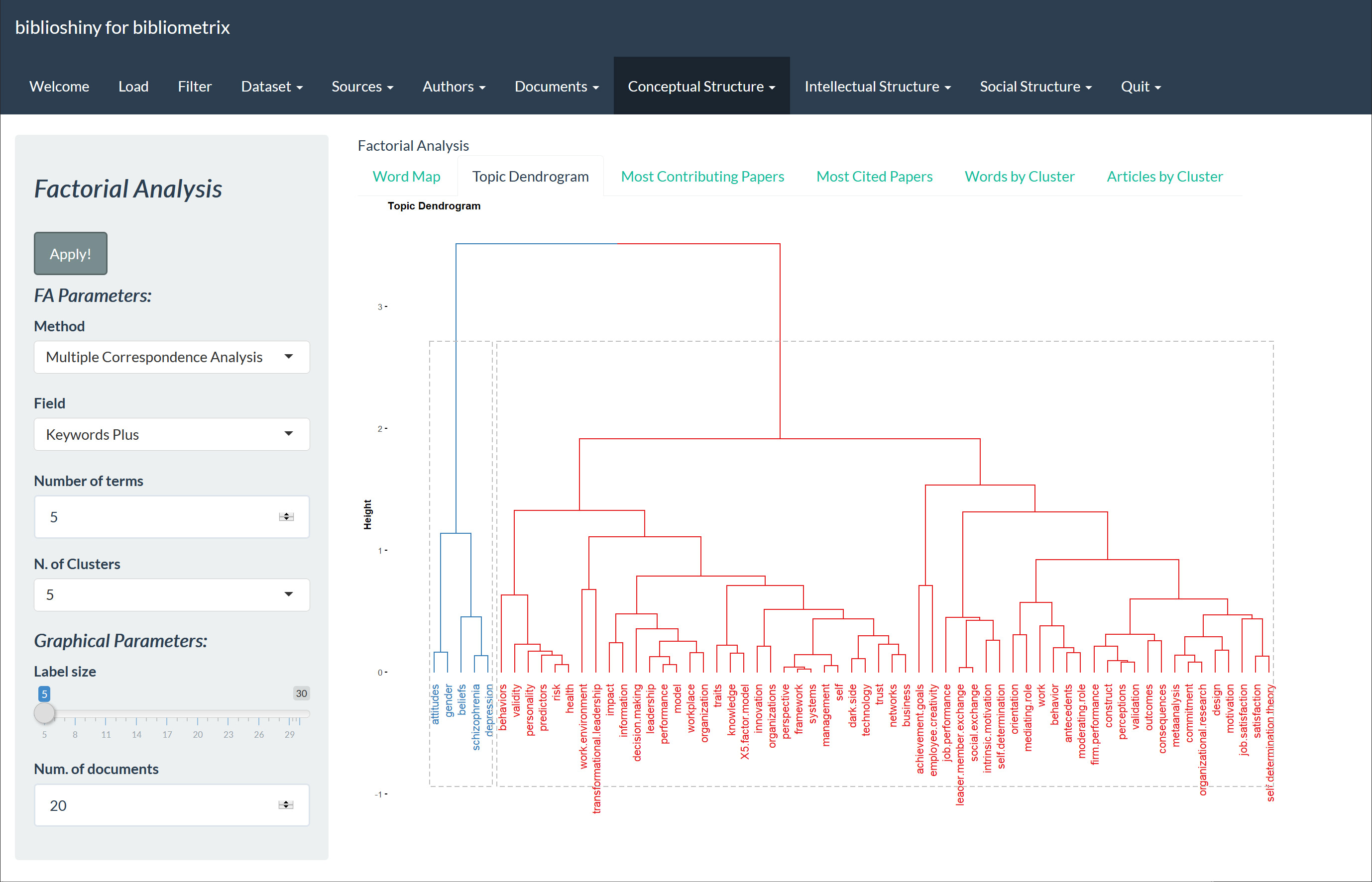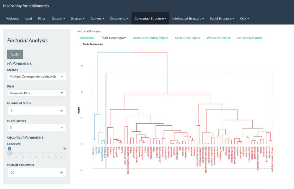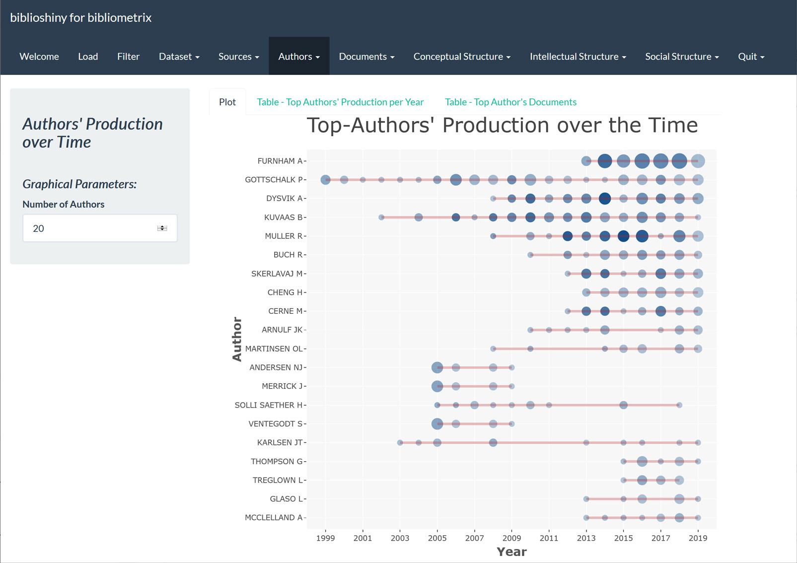 A presentation of biblioshiny: http://bibliometrix.org/biblioshiny/