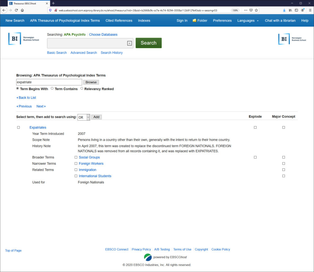 When building a search, there are also great tools, such as a keyword thesaurus, such as at Psychinfo and Business source complete.